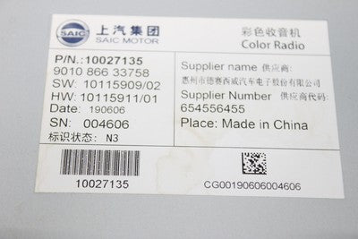 2019 MG MG3 Multifunction Display Screen Head unit 10027135